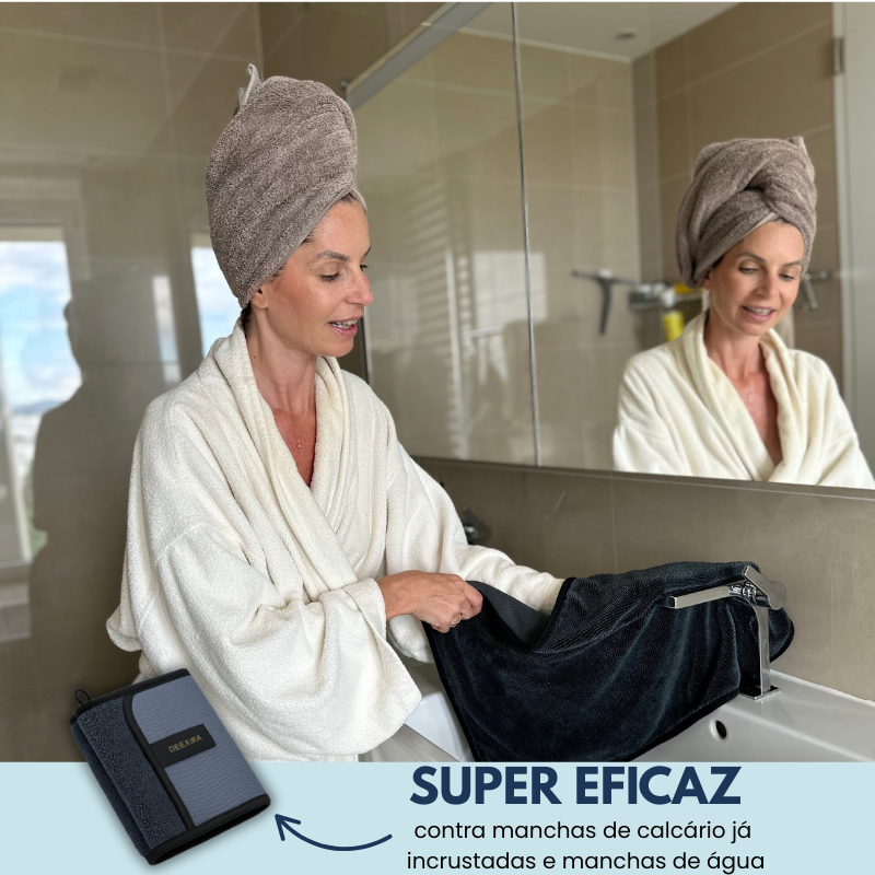 Desde janelas brilhantes e pias impecáveis até torneiras, espelhos, bancadas de cozinha e até mesmo o seu carro querido - a Deexira™ oferece uma secagem fácil em todos os ambientes. Aproveite a versatilidade ilimitada desta toalha e desfrute de resultados impecáveis em qualquer superfície, tornando a limpeza uma tarefa fácil e deixando o seu mundo a brilhar como nunca antes.